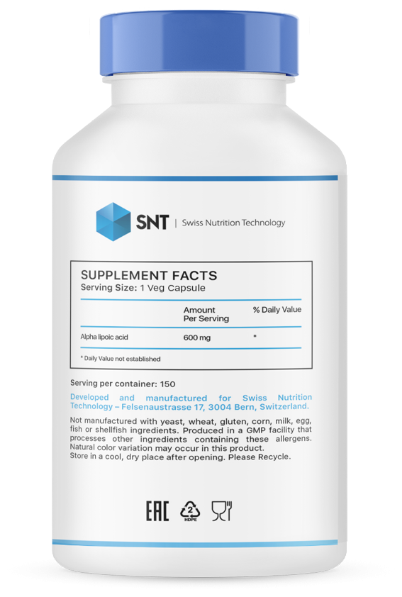 SNT Alpha lipoic acid, Альфа липоевая кислота, 150 капсул