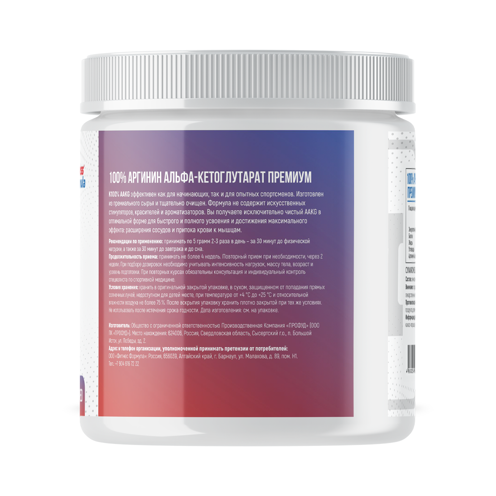 100% эффективен как для начинающих, так и для опытных спортсменов. Изготовлен из премиального сырья и тщательно очищен. Формула не содержит искусственных стимуляторов, красителей и ароматизаторов. Вы получаете исключительно чистый AAKG в оптимальной форме для быстрого и полного усвоения и достижения максимального эффекта: расширения сосудов и притока крови к мышцам.